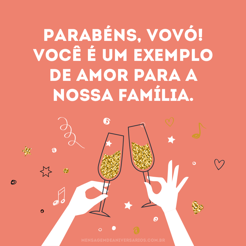 Vovó, você é um exemplo para toda nossa família. Que Deus te dê muita saúde e permita que você viva muitos anos. Parabéns!